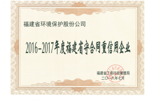 ● 2018年07月 榮獲2016—2017年度福建省“守合同重信用企業(yè)”