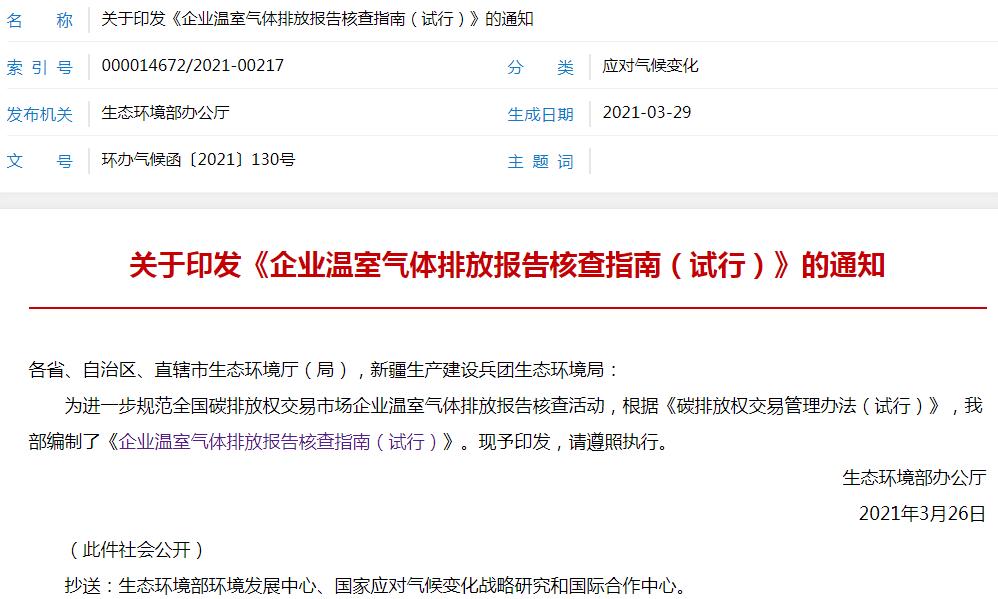 環(huán)保部發(fā)布《企業(yè)溫室氣體排放報(bào)告核查指南(試行)》