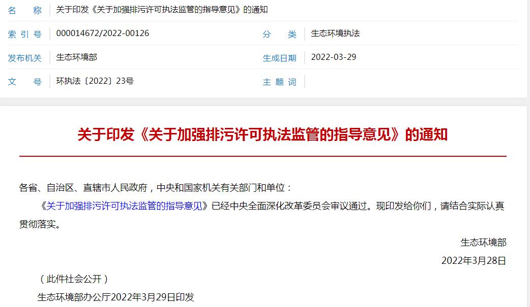 關(guān)于加強排污許可執(zhí)法監(jiān)管的指導意見