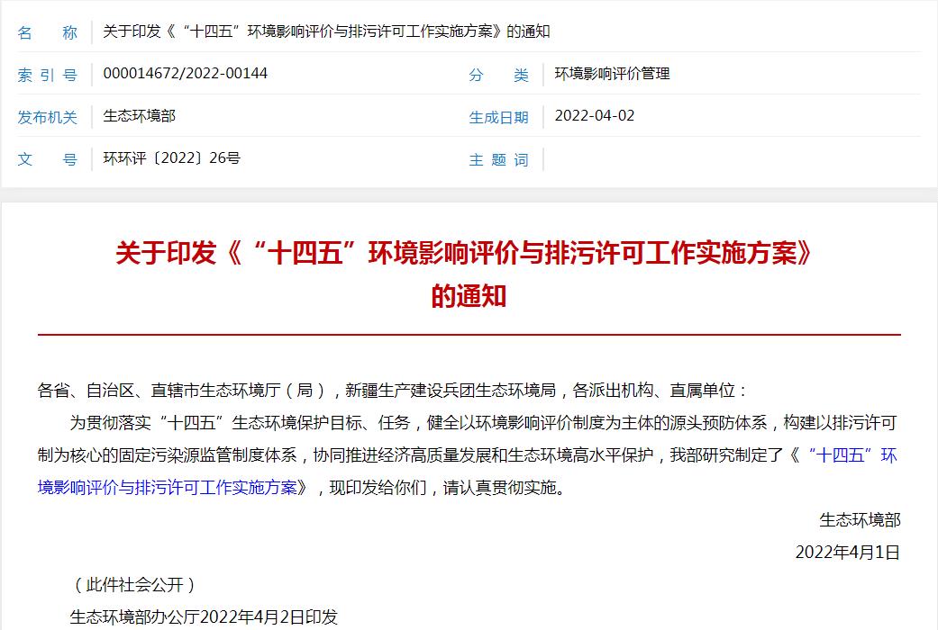 十四五”環(huán)境影響評價與排污許可工作實施方案